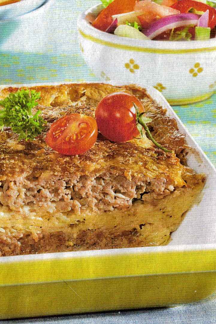 Pekáček nebo zapékací misku (formu) vymažeme tukem (sádlo) a vložíme polovinu masové hmoty. Na ni rozprostřeme bramborákovou směs a tu pak překryjeme druhou polovinou masové směsi. Pečeme ve vyhřáté troubě dozlatova.